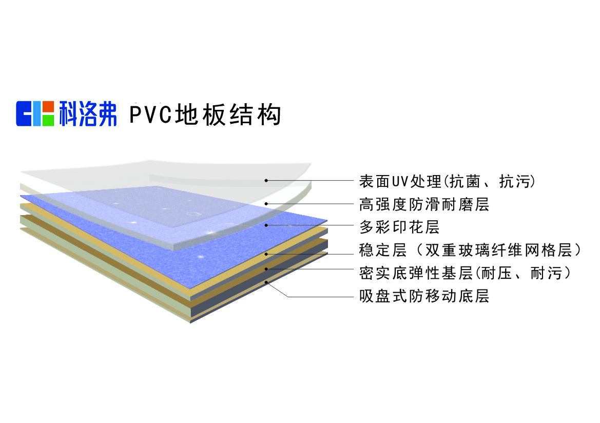 科洛弗PVC 塑膠地板主要材料為pvc(聚氯乙烯)樹脂,從結(jié)構(gòu)上分主要有多層復(fù)合型和同質(zhì)透心型及半同質(zhì)體型3種。其中多層復(fù)合型PVC地板的意思是它有多層結(jié)構(gòu)的,一般是由4-6層結(jié)構(gòu)疊壓而成,具體為:耐磨層(含UV處理)、印花膜層、玻璃纖維層、 彈性發(fā)泡層、磨壓層、基層等。這些不同結(jié)構(gòu)經(jīng)過特殊處理,合而為一,使之具有很好的耐熱性、防潮性、質(zhì)量穩(wěn)定性、抗衰老、抗菌、靜音、耐磨、防火阻燃等優(yōu)點(diǎn)。