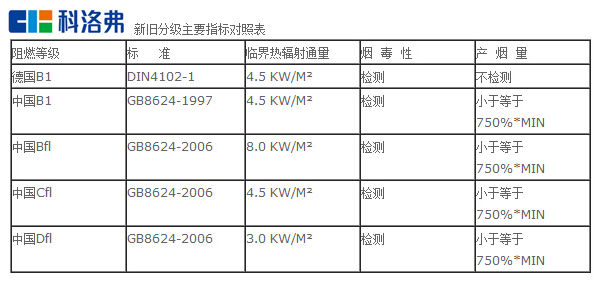 我國(guó)原來(lái)的標(biāo)準(zhǔn)GB8624-1997主要參考德國(guó)的DIN4102-1編制而成,但我國(guó)的B1級(jí)與德國(guó)的B1級(jí)也不同,我國(guó)的B1級(jí)比德國(guó)的B1級(jí)多了一項(xiàng)產(chǎn)煙量(煙密度)指標(biāo),可以說(shuō)要求更高。
