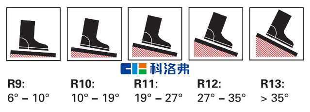 R11> 19° - 27°高于平均值修車廠、實驗室、食品工廠等偶有水漬或油漬等較易滑倒的場所