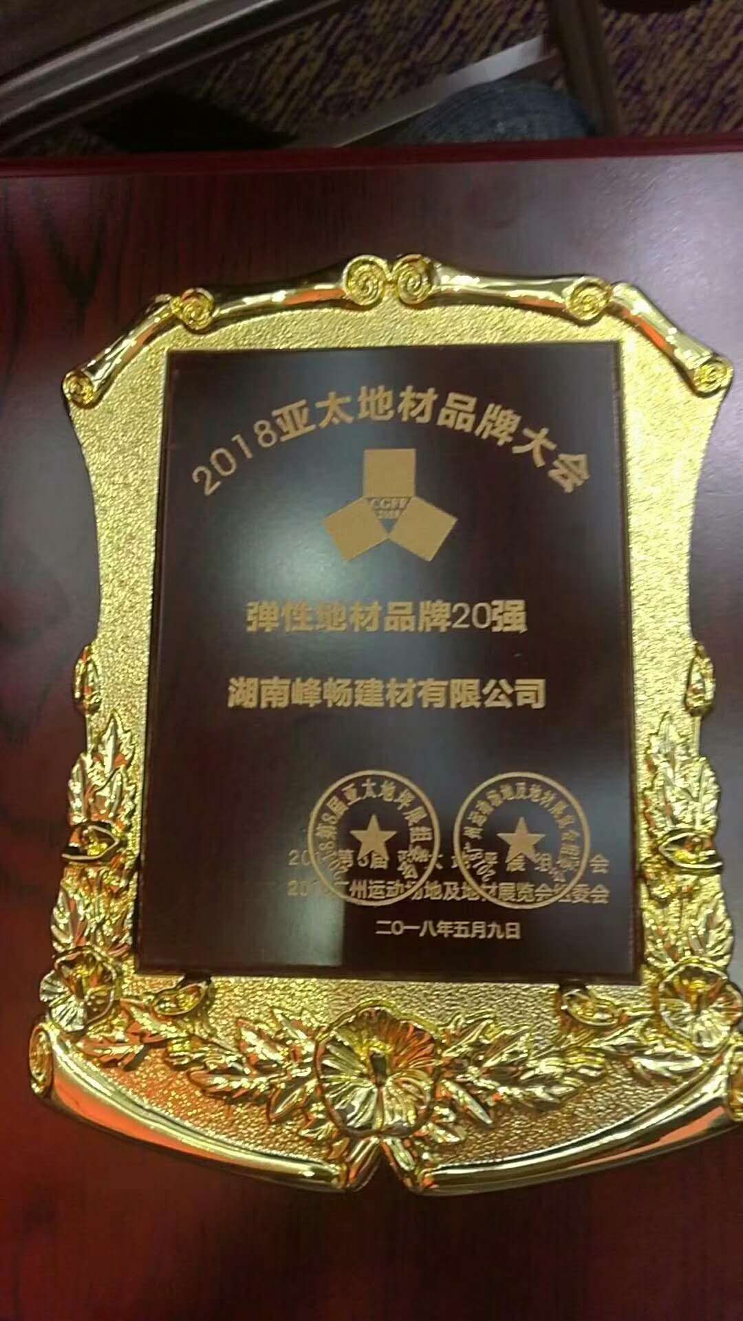 湖南峰暢建材有限公司在中國2018亞太地材品牌中榮獲中國彈性地材20強(qiáng)