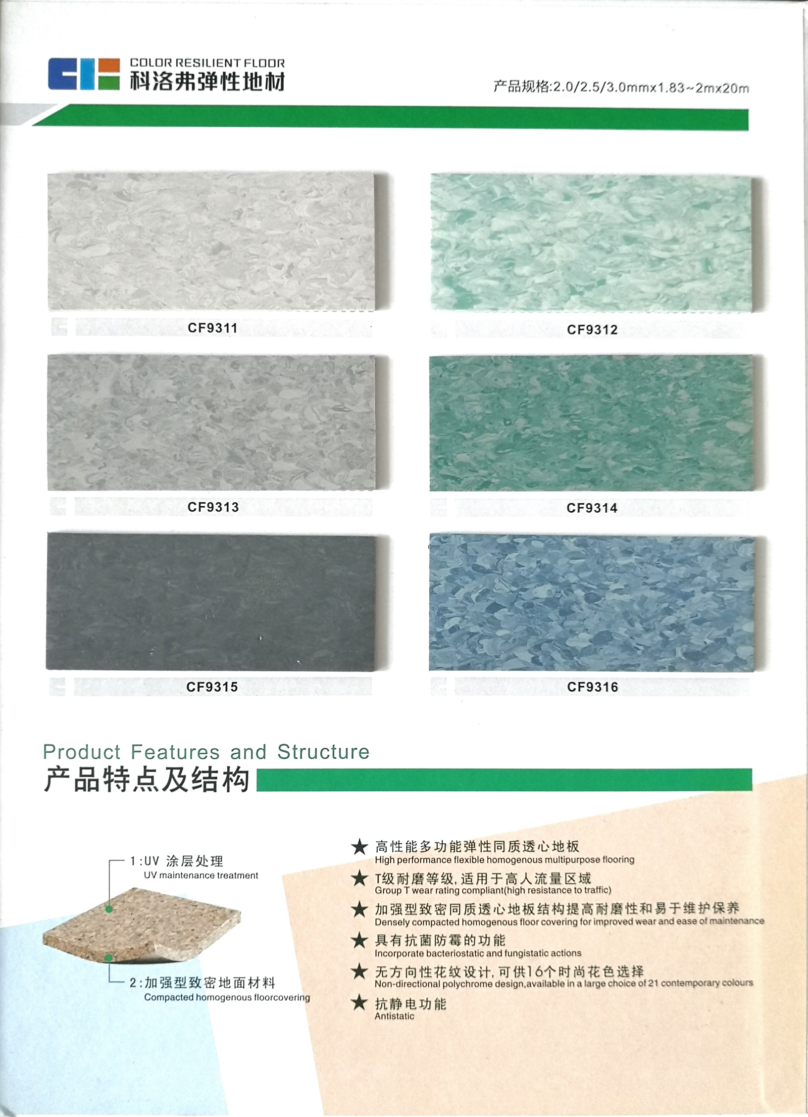 科潔系列無方向同質(zhì)透心PVC地板