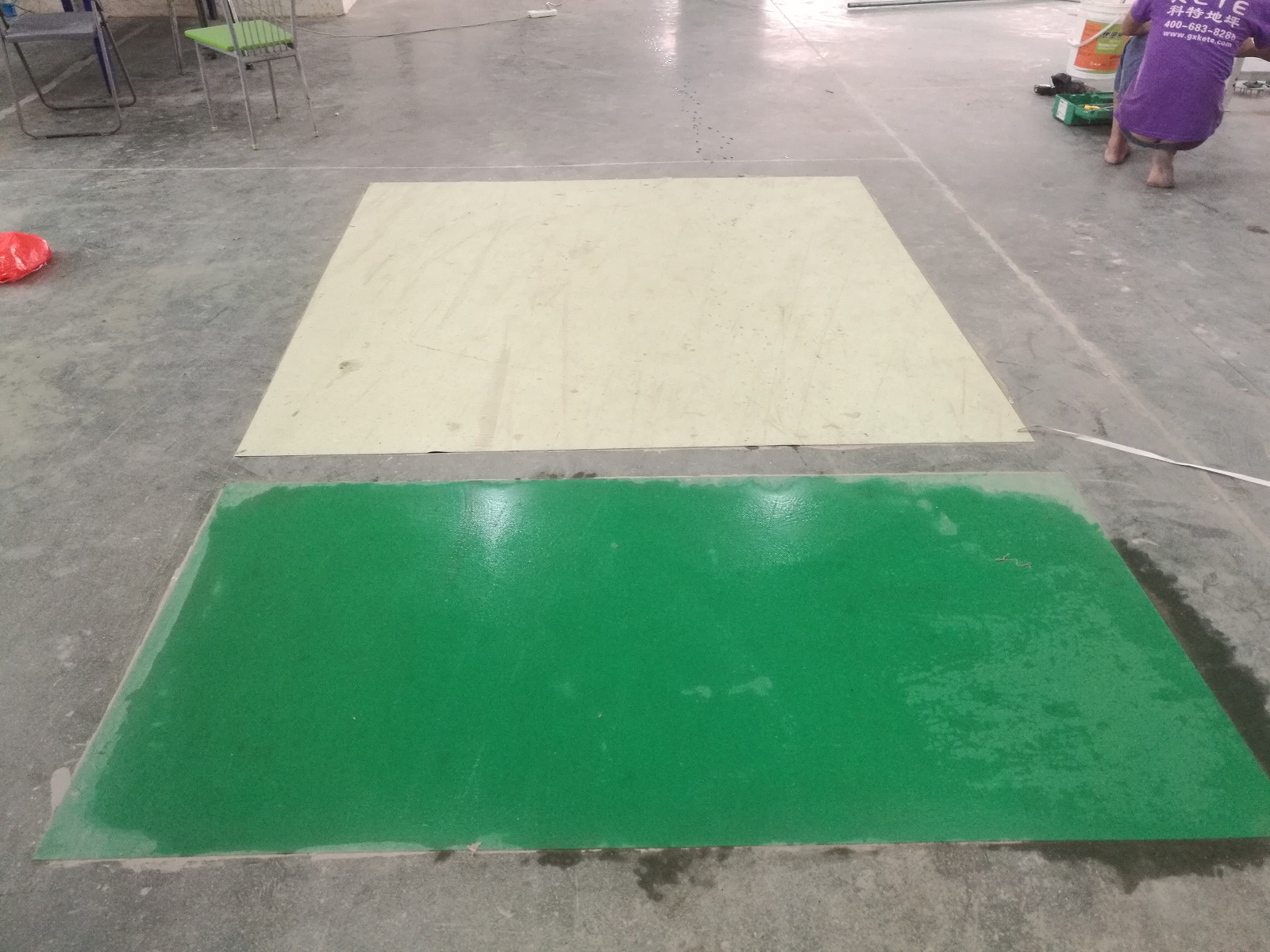 科洛弗工業(yè)地板施工中,工廠原地面與施工后的工業(yè)地板地面的對(duì)比